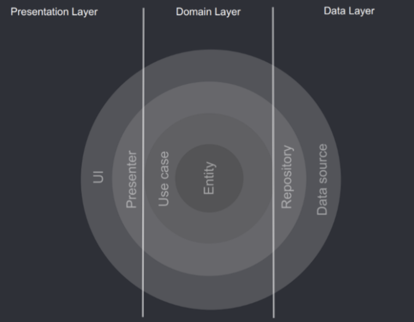 (Entities <- Usecases <- Presenter <- UI)