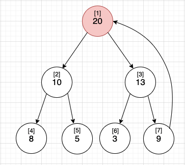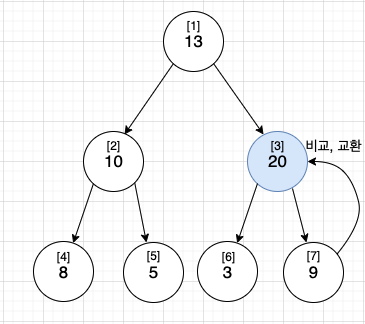 - 두 개의 자식노드 중 더 큰 값과 교환
