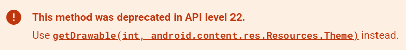 getDrawable은 API22 버전부터 Deprecated(getDrawable) 되었습니다.