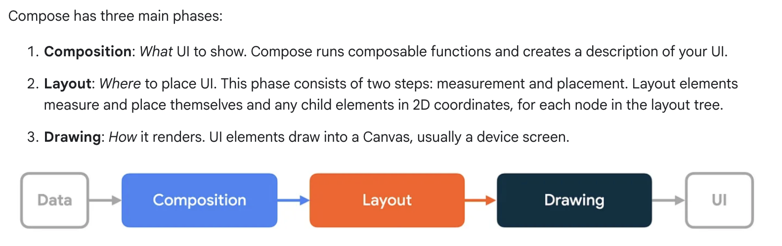 composition 단계에서 ui 트리를 만드는데 많은 리소스가 사용되는데 이 단계를 건너뛸 수 있다는 것만으로도 리소스 낭비를 막을 수 있는 셈!