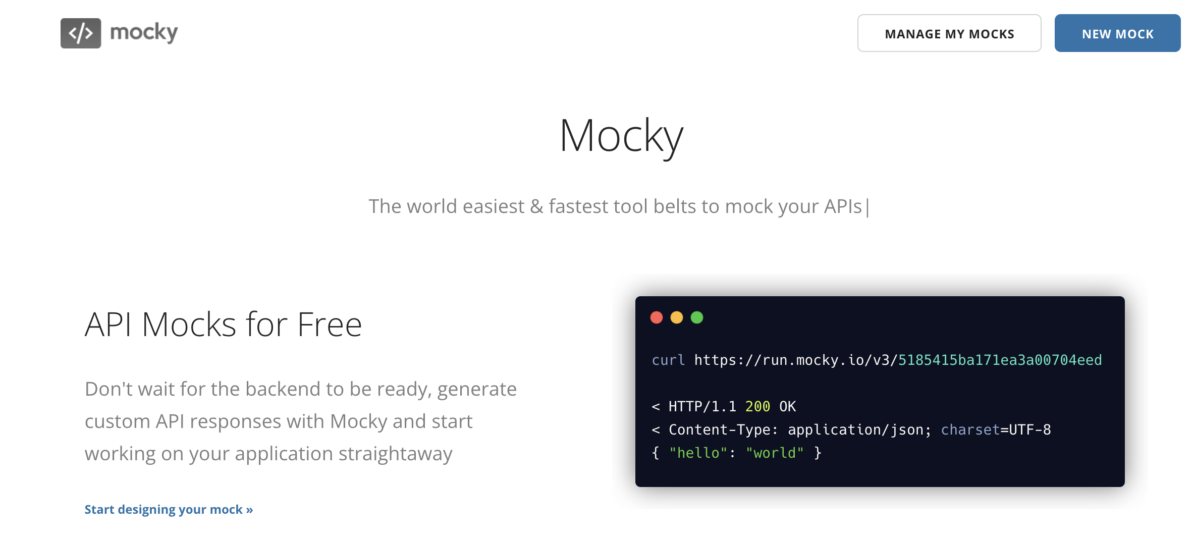 1. https://designer.mocky.io/에서 NEW MOCK을 클릭하여 이동