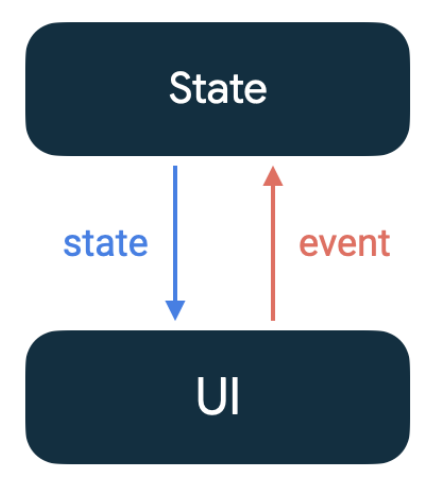 - 이벤트 발생 -> 이벤트 핸들러가 상태 변경(업데이트) -> 상태가 변경되면 state holder에서 변경된 상태 UI 표시