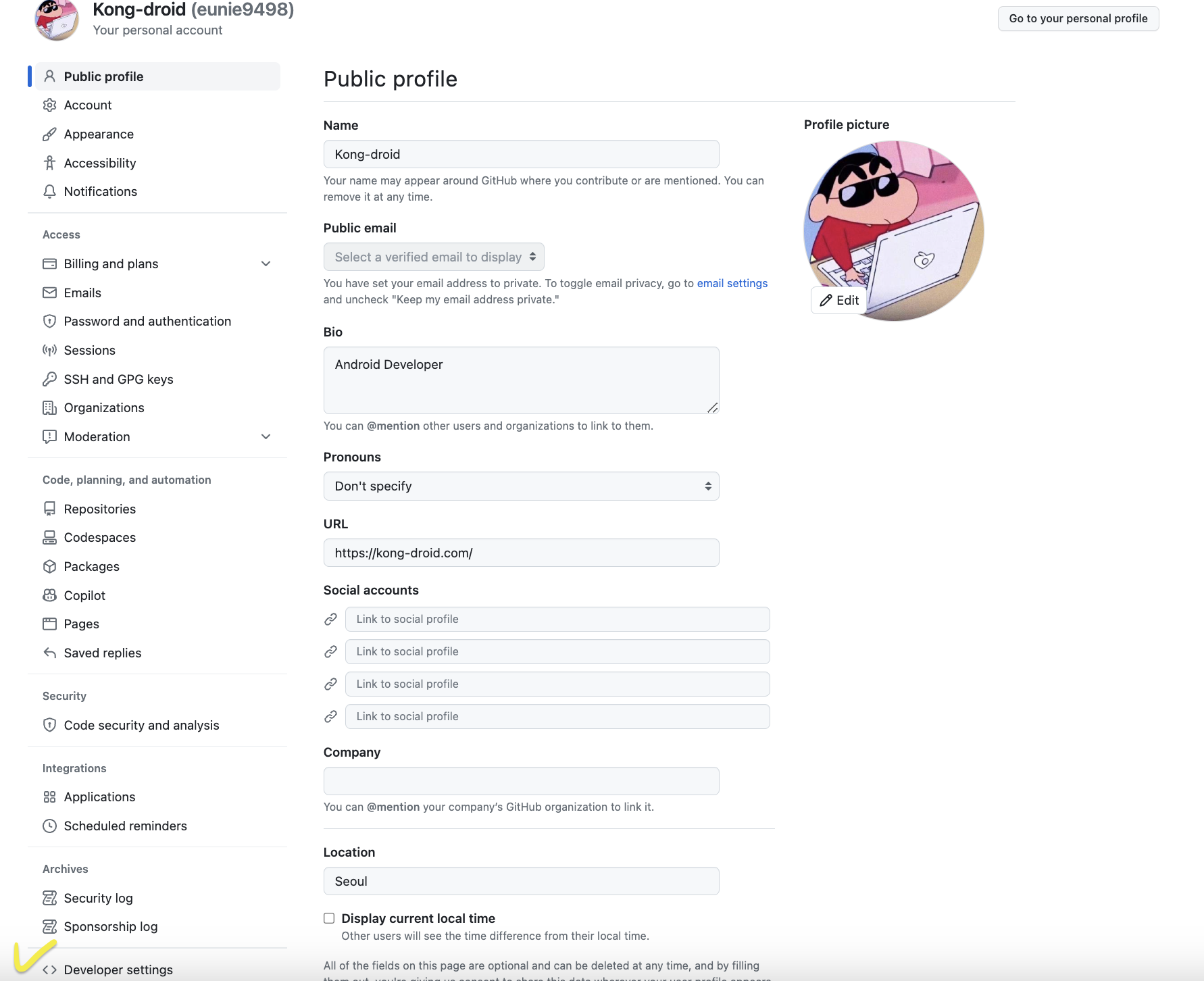 Github - 프로필 - settings 선택