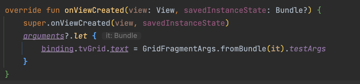 nav_graph에서 GridFragment에 argument를 생성했으므로 자동으로 GridFragmentArgs가 생성되어있습니다