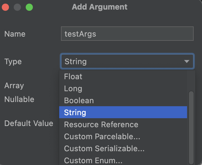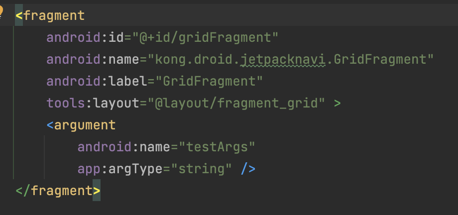 testArgs로 Argument를 생성하면 nav_graph.xml에 자동으로 선언되어 있습니다