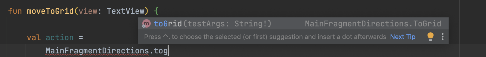 val action = MainFragmentDirections.toGrid("제대로 전달되었습니다")